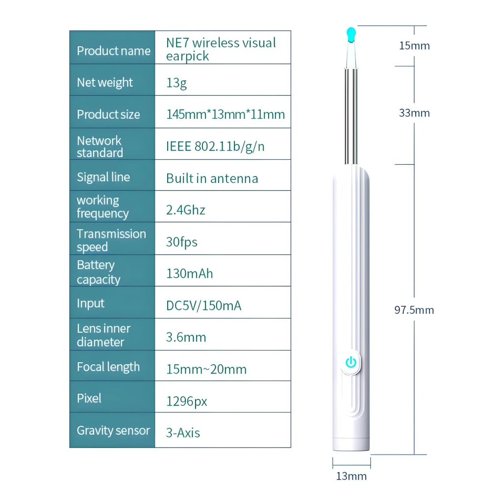 The Smart Visual Ear Otoscope is packed with features that ensure a comprehensive and safe ear cleaning experience. With a 360° wide-angle professional-grade lens, you can see real-time images of the tiniest details inside your ear canal. The 1296P HD image resolution enhances clarity, making it easier to remove wax residue and ensuring your ears are completely clean.
