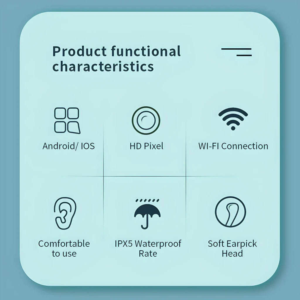 The Smart Visual Ear Otoscope is perfect for regular ear maintenance, ensuring your ears are free from wax buildup. It’s also great for checking your ear health or performing quick inspections on your family members. To use, simply download the app, connect via WiFi, and begin your inspection. The easy-to-follow instructions make it simple for anyone to use, ensuring a hassle-free experience every time.